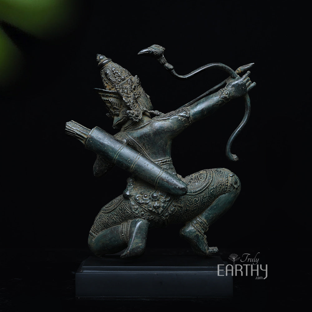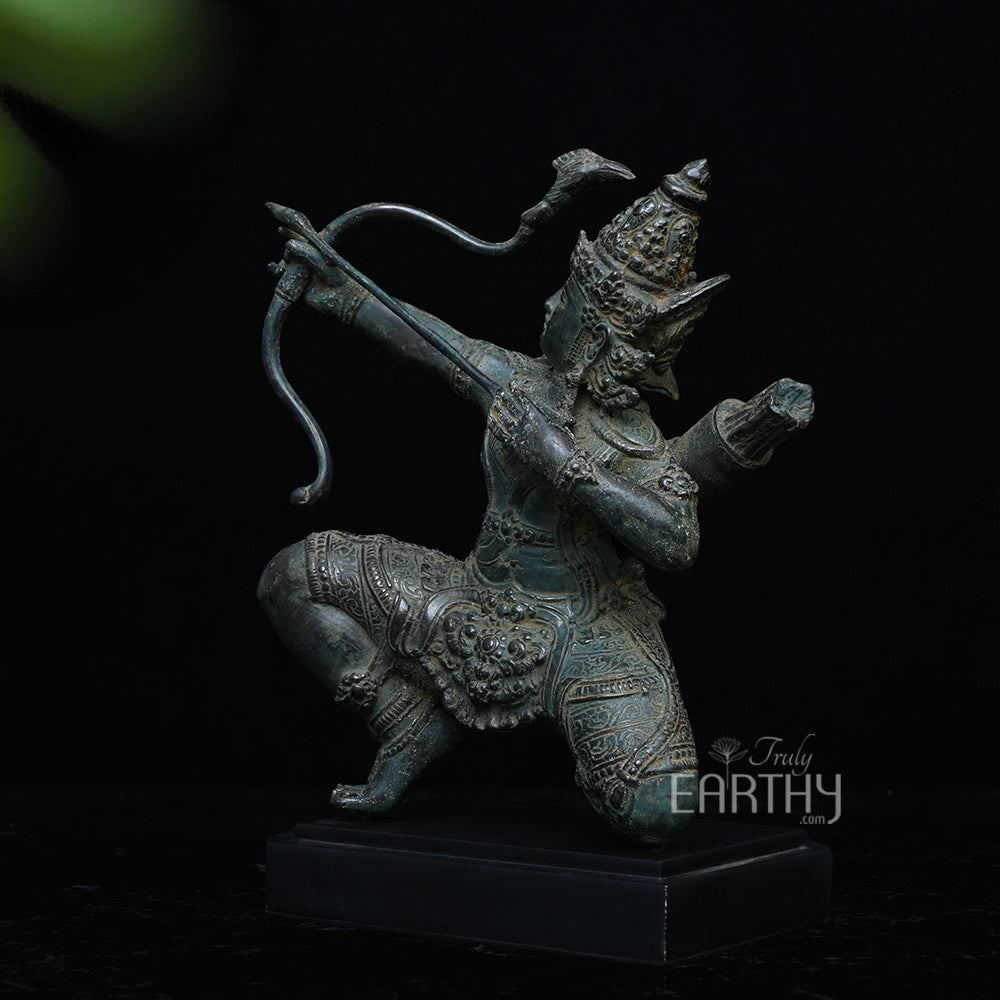 Buy this exquisitely handcrafted bronze sculpture of Lord Rama, depicted as a masterful archer, meticulously crafted in Indonesia using the finest sculpting alloy.