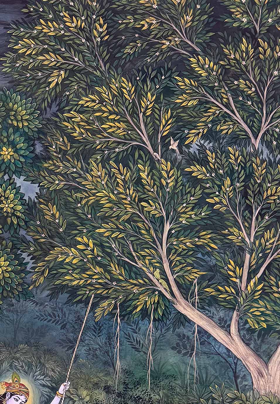Swing of Divine Love - Pichwai Painting (Handmade / Unframed / 111.7 x 167.6 cm)