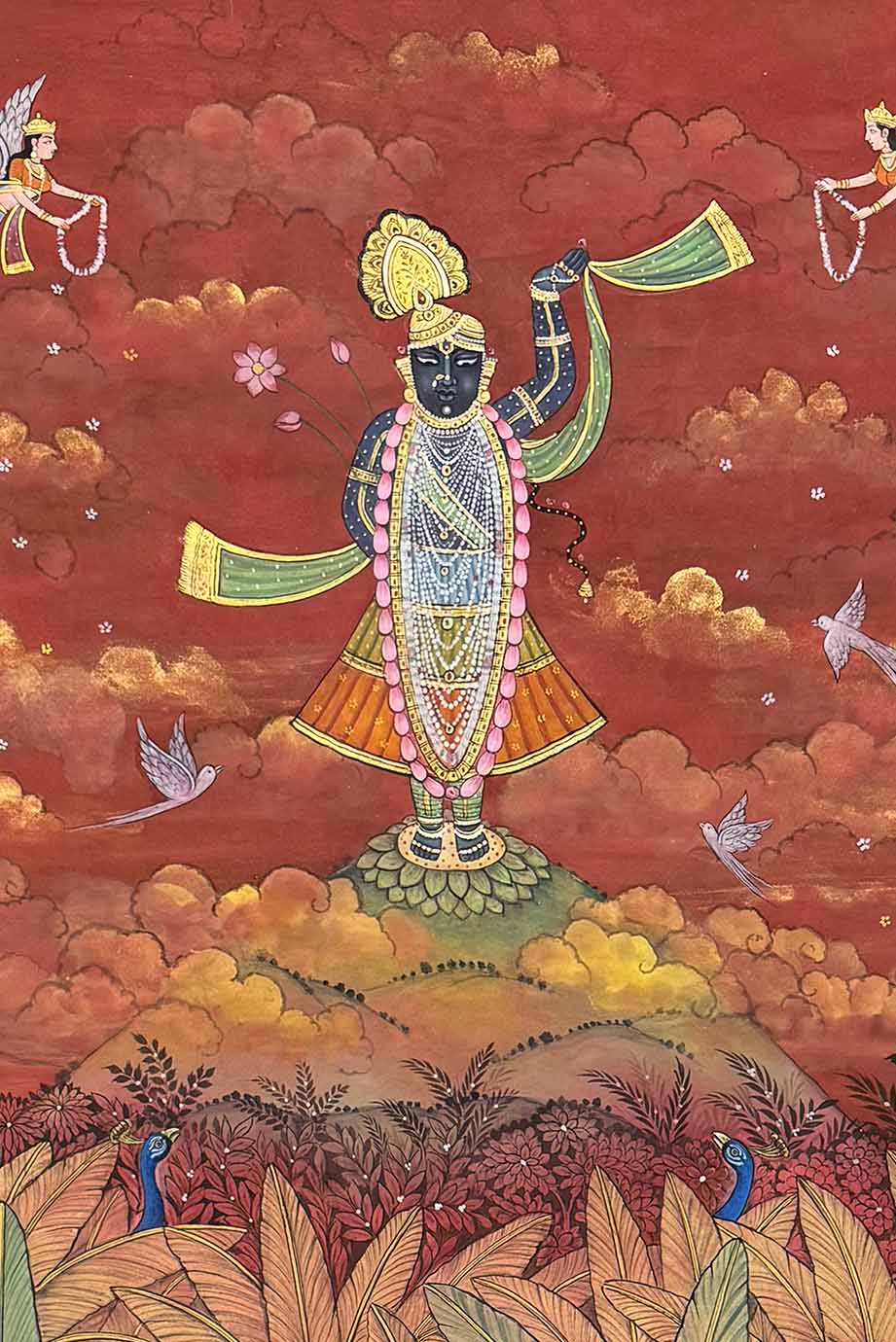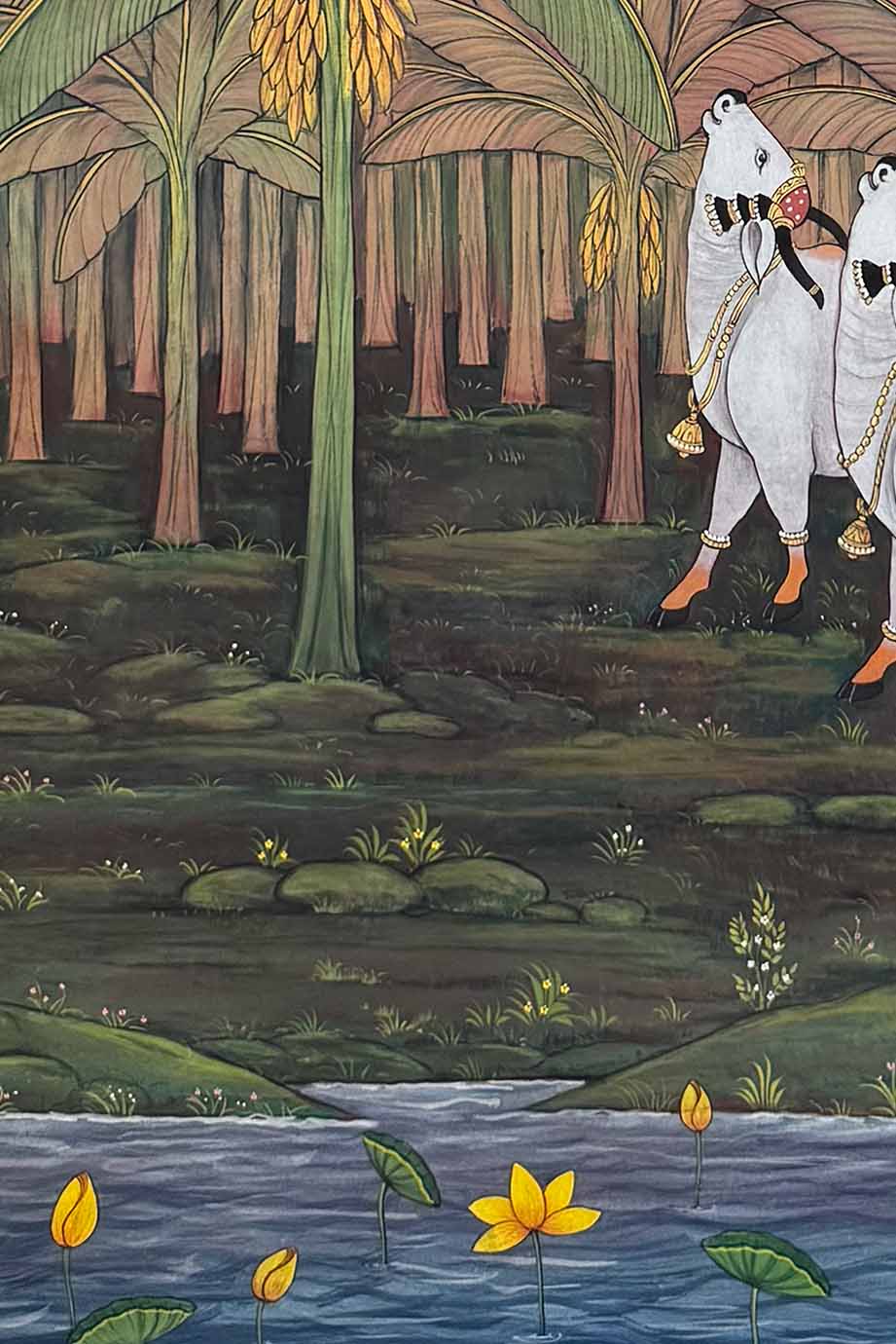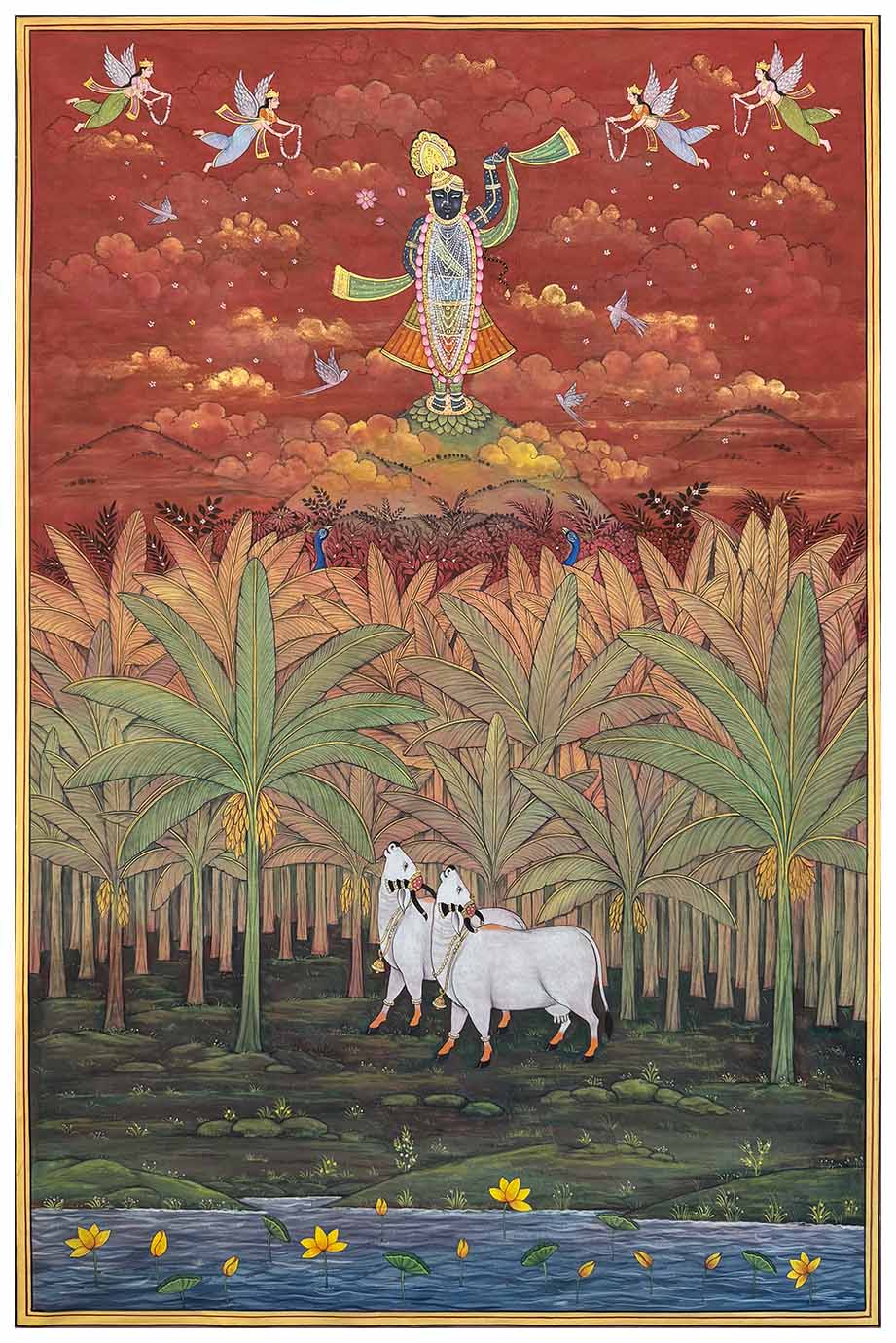 Shrinathji Blessing the Sacred Van - Pichwai Painting (Handmade / Unframed / 111.7 x 167.6 cm)