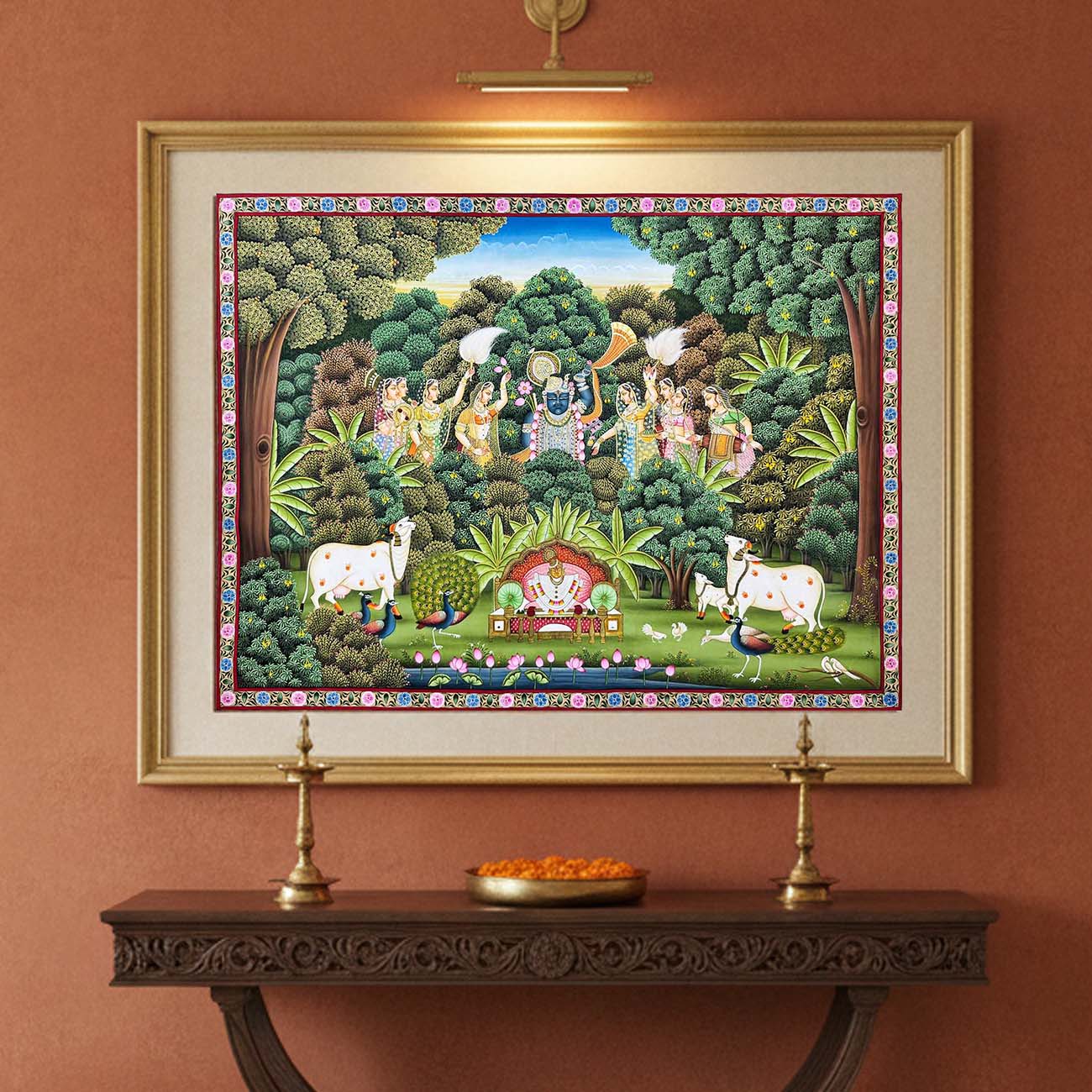 Sewa Kunj - Handmade Pichwai Painting with Real Gold Leafing (Unframed / 120.6 x 91.4 cm)